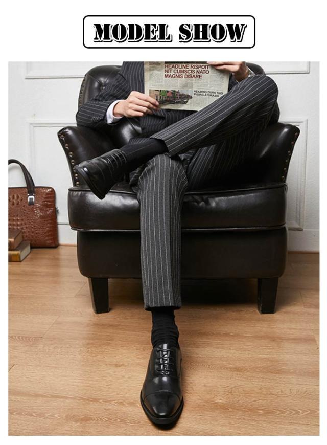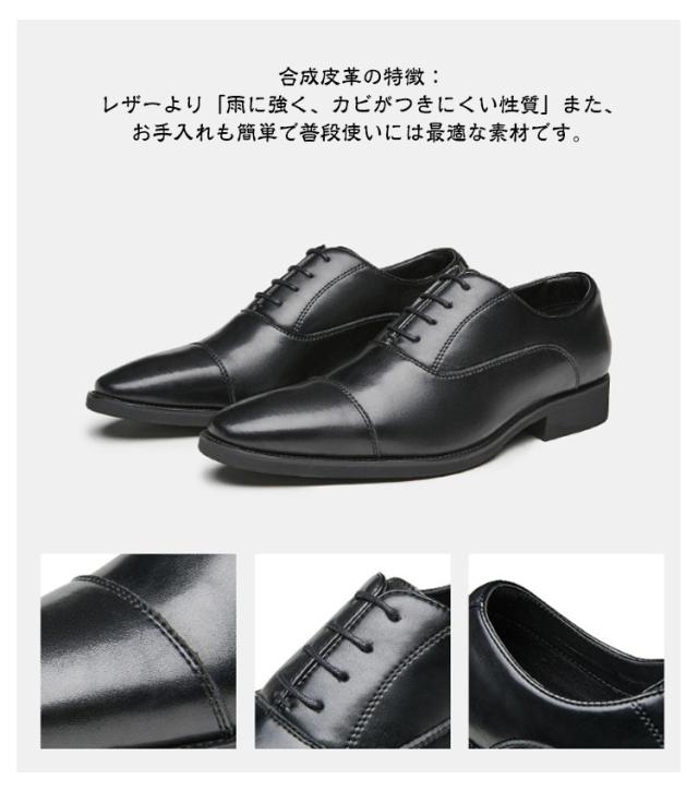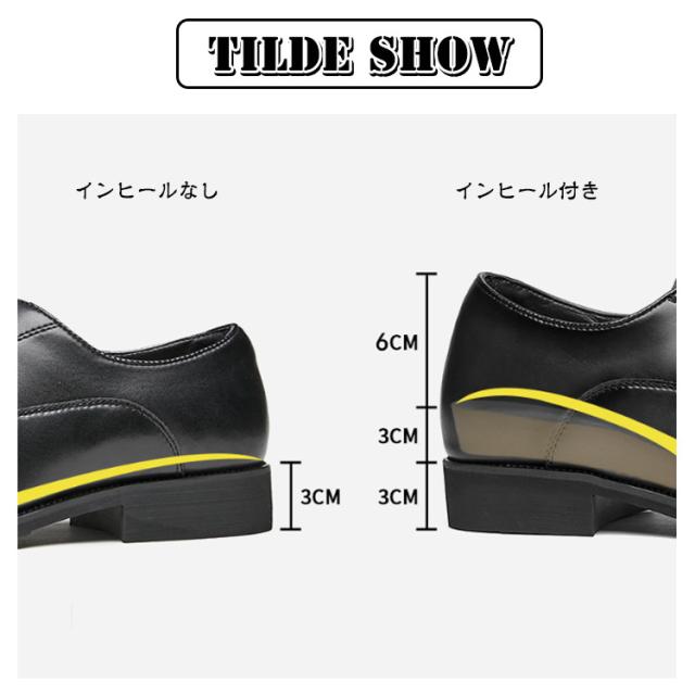 | 身長を高く見せたい人の為のさりげなく6cmヒールアップの革靴です。 合成皮革の特徴:レザーより「雨に強く、カビがつきにくい性質」また、お手入れも簡単で普段使いには最適な素材です。 ポインテッドトゥを施すことで足先をより美しく見せ、高級感たっぷり。 シーズン問わず使えるシューズなので、1足は持っておきたい必須アイテムです。 ビジネスシーンや結婚式 卒業式 入学式 成人式 入社式 新生活などのパーティーシーンの足元に彩りを添えるリッチなルックスにきっとご満足いただけるはずです。 | |