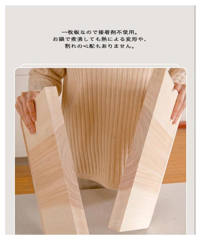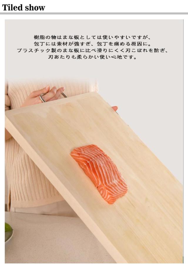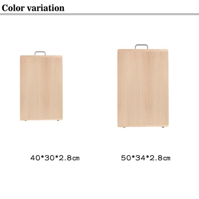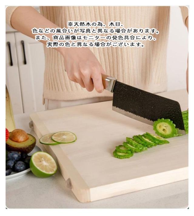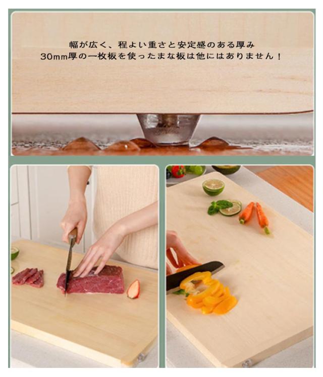 | 包丁の刃にも優しく刃こぼれしにくい木製まな板【40*30*2.8cm?50*34*2.8cm】 樹脂の物はまな板としては使いやすいですが、包丁には素材が強すぎ、包丁を痛める原因に。プラスチック製のまな板に比べ滑りにくく刃こぼれを防ぎ、刃あたりも柔らかい使い心地です。 幅が広く、程よい重さと安定感のある厚み 30mm厚の一枚板を使ったまな板は他にはありません! 一枚板なので接着剤不使用。お鍋で煮沸しても熱による変形や、割れの心配もありません。 ※天然木の為、木目、色などの風合いが写真と異なる場合があります。また、商品画像はモニターの発色具合により、実際の色と異なる場合がございます。 | |