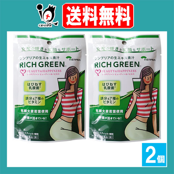 【栄養機能食品(鉄)】リッチグリーン ビューティー&ハピネス 7包入×2個セット【ケンプリア】【KENPRIA】ケンプリアの生エキス青汁 スティックタイプ青汁 有機大麦若葉 はぴねす乳酸菌 GABA配合