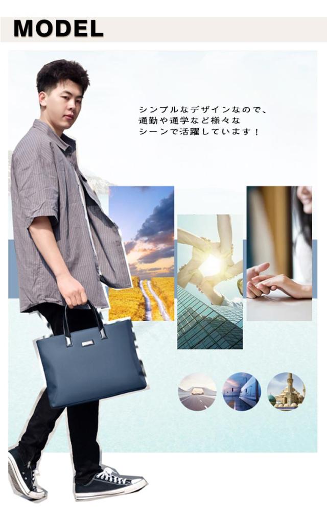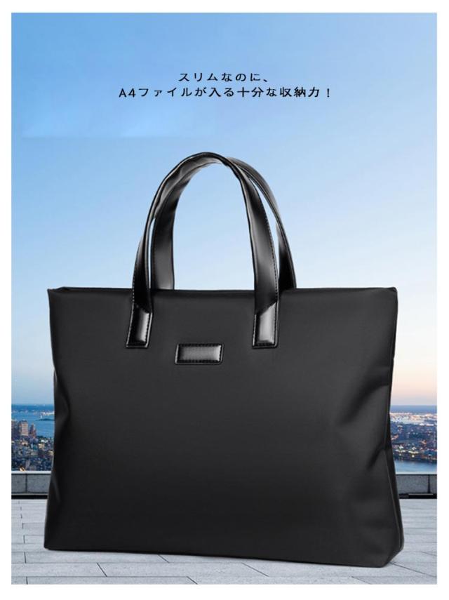 | 大容量のビジネスバッグが登場!シンプルかつ軽量なビジネスバッグ。 スリムなのに、A4ファイルが入る十分な収納力! 撥水性が高い生地を使用しているので、雨でも心配になりません! シンプルなデザインなので、通勤や通学など様々なシーンで活躍しています! | |