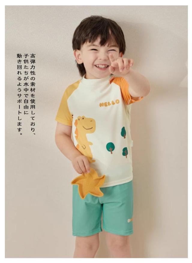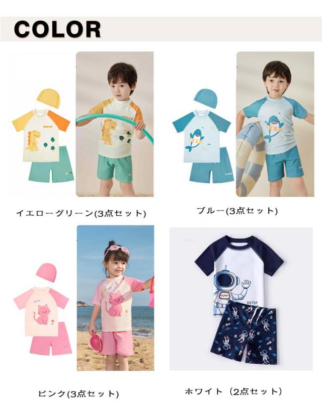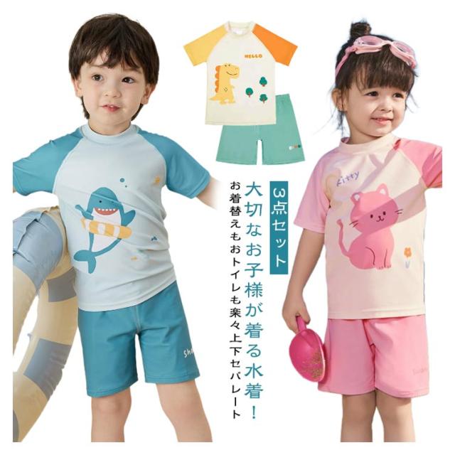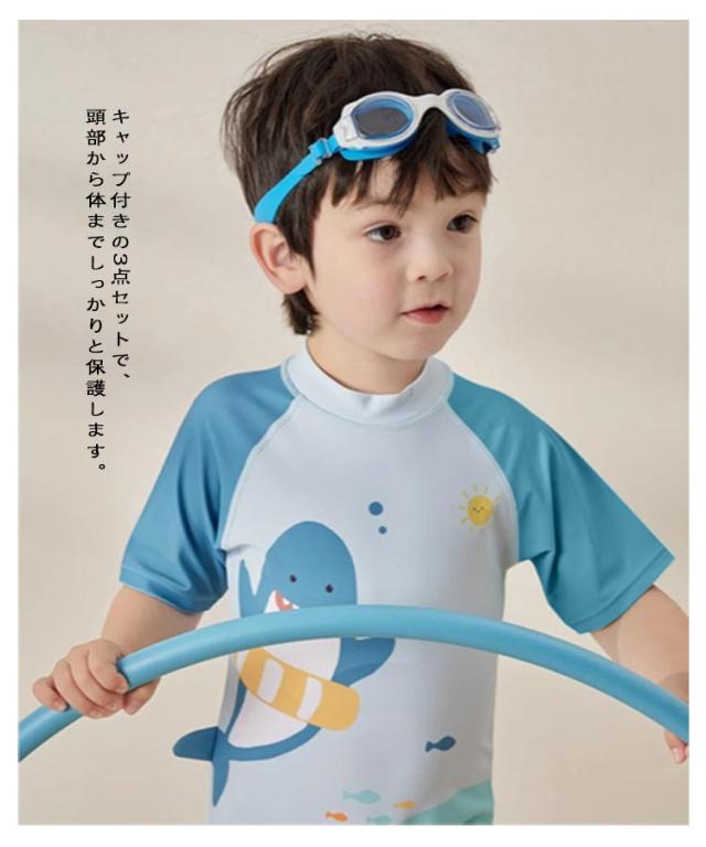 半袖 キャップ付き キッズ 水着 海水浴 子供用 川遊び スイミング スイムウェア ショートパンツ 快適 セパレート トップス プール 上下セット ビーチ 幼児 ベビー男子 3点セット キュート 小学生 uvカット 日焼け対策 男児用 UV対策 水遊び アウトドア