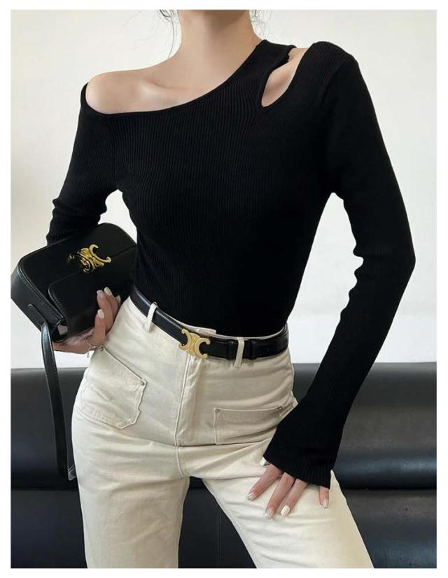 ニット オフショル トップス レディース ワンショルダー セーター リブニット シンプル オフショルダー トップス ニットプルオーバー ニットソー 秋冬 カットソー 細見え 大人可愛い 春 おしゃれ カジュアル フェミニン 長袖 秋 冬