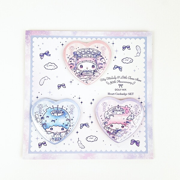 サンリオ マイメロディ&キキララ 50th×DOLLY MIX ハート缶バッジ3個セット Sanr
