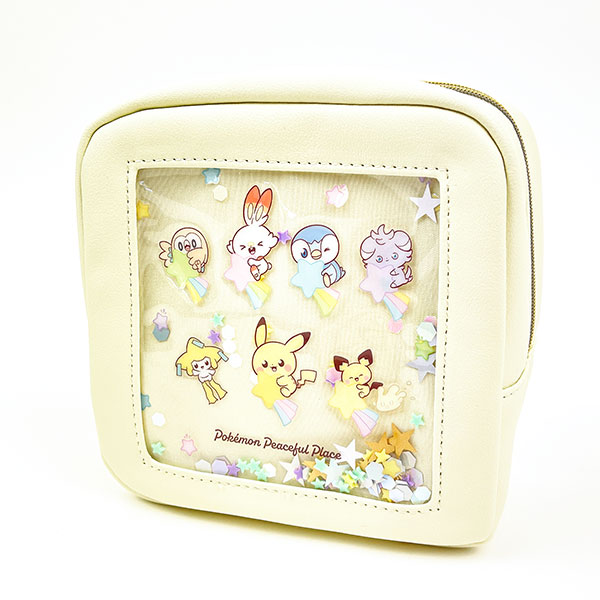キラキラかわいい★ポケピースのほしぞらシリーズ。シャカシャカ動くスパンコールがとってもキュートなアイボリーのポーチは、マチ付きで使いやすさも◎!!
