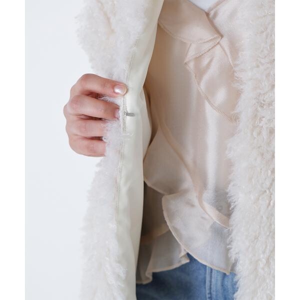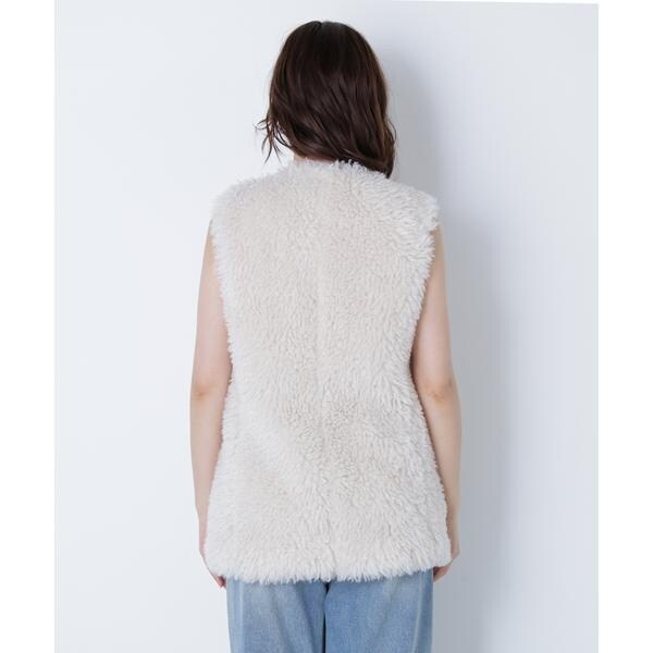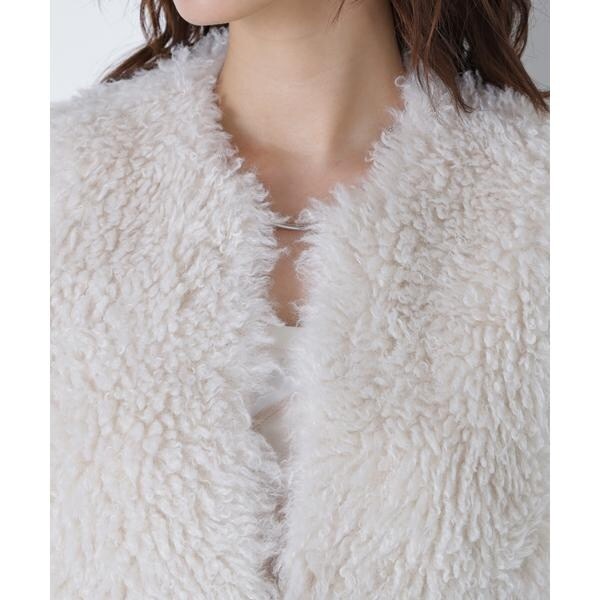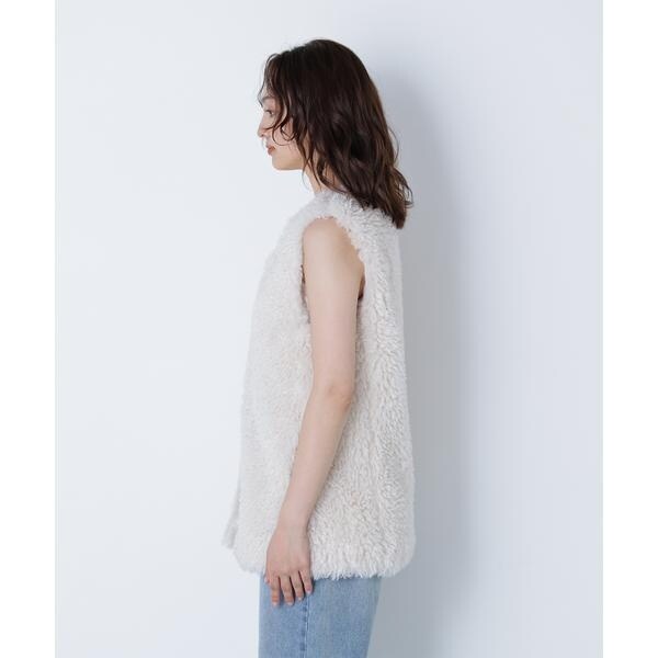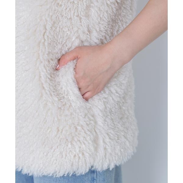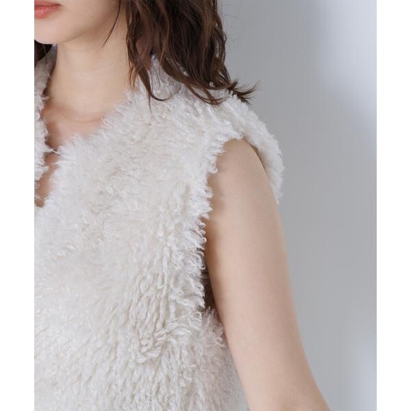 <BLANC(ブラン)>今のほしいをここに。自分らしく、自由なスタイリングを楽しみたい。洗練されたCLASS感と“今”を感じるモードフェミニンなアイテムを提案します。プードルのような、くるくるとした毛足が特徴のフェイクファージレ。軽くてさっと羽織ることができ、ヒップが隠れる着丈で体型カバーにひと役。フロントのホックを閉めてVネックデザインとしても着ていただけます。<素材>くるくるとした毛足のフェイクファーを使用しています。<詳細>仕様・前ホック裏地・あり透け感・なし / 光沢・なし / 伸縮性・なし 生地の厚さ・薄手※モデルの着用画像の場合、光の当たり具合により、実際の色味と異なって見えることがございます。色味は、商品単体の画像をご参照ください。