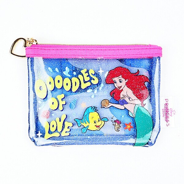 アリエルの両面クリア素材で中身が確認できるラメミニポーチです。キラキラで可愛い♪イヤホンや小物を入れるのにちょうどいいサイズ感◎魅せる収納もできちゃいます♪可愛いハート型のファスナーチャームがおすすめのポイントです☆