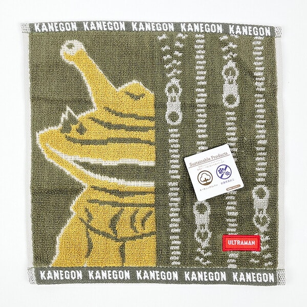 カネゴンが大胆にデザインされたミニタオル。抗菌防臭加工なのでイヤな臭いや菌の増殖を防ぎます。オーガニックコットン使用で人にも環境にも優しいタオルです♪