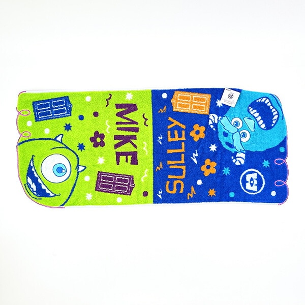 左右それぞれキャラクターのフェイスがデザインされていてとてもカワイイフェイスタオルです。タオル掛けにはその日の気分で好きな柄を表に出せます♪こちらはモンスターズインク柄です。