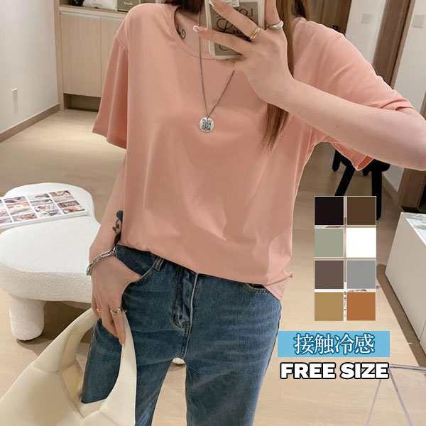 夏新作 接触冷感tシャツ レディース Tシャツ 接触冷感 冷感Tシャツ 半袖 無地tシャツ カットソー トップス ゆったり モーダル素材