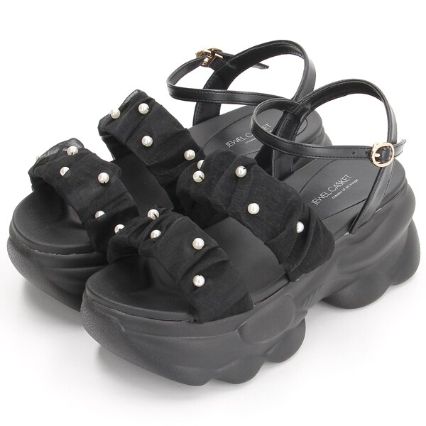 【25春夏新作】Jewel casket パールギャザー 厚底サンダル