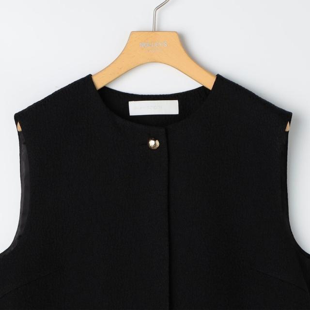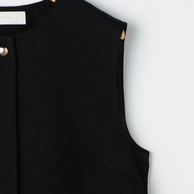 ・程よい光沢のある、ポコポコとした凹凸のフクレジャガード素材を使用したジレ