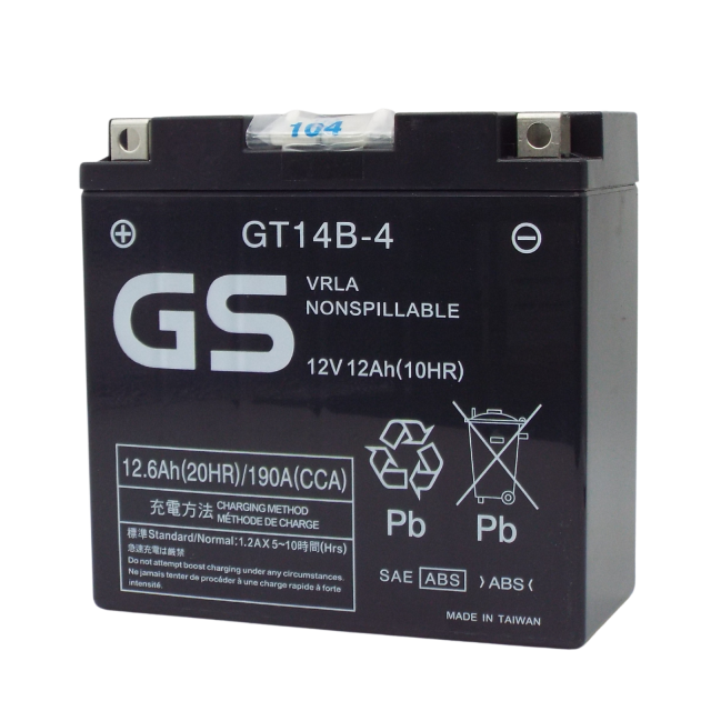 台湾GS GT14B-4 バイクバッテリー 充電済【互換 YT14B-BS YT14B-4 FT14B-4】即使用可能