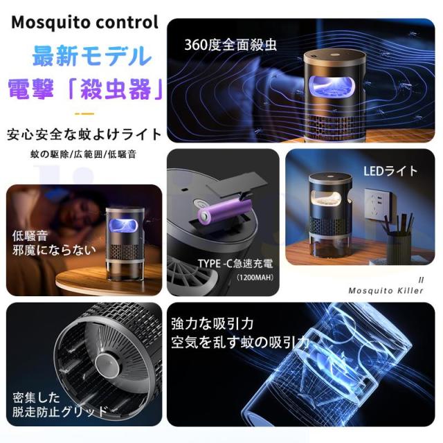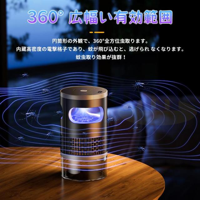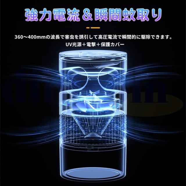 最新の電撃殺虫器で、360度全方位の蚊取り効果を実現。円筒形のデザインで、UV光源と電撃格子を組み合わせた革新的な虫除けシステムを採用しています。