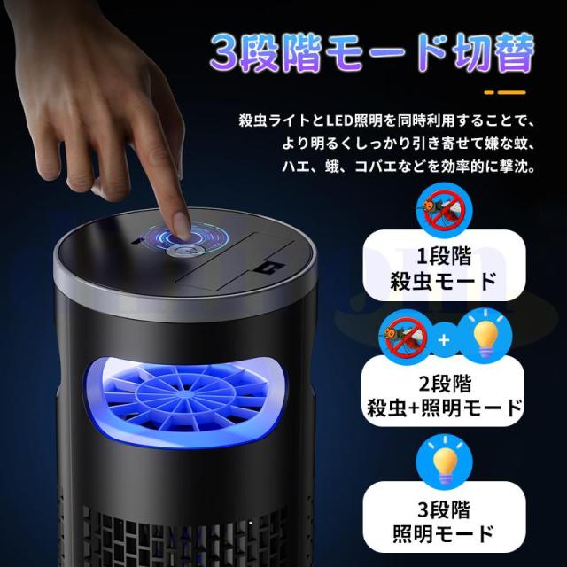 電撃殺虫器 電撃殺虫機 電気蚊取り器 捕虫器 UV光源誘引式捕虫器 3段階調整 照明 ランタン LEDライト 静音 省エネ 据え置き USB充電 防水 殺虫ライト 殺虫灯