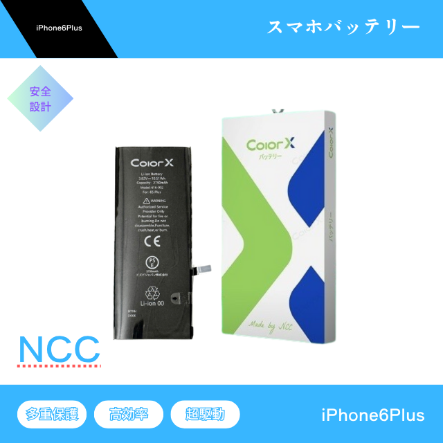 iPhone6Plus バッテリー NCC ColorX 交換 互換 バッテリー 防水シート バッテリーステッカー PSE取得