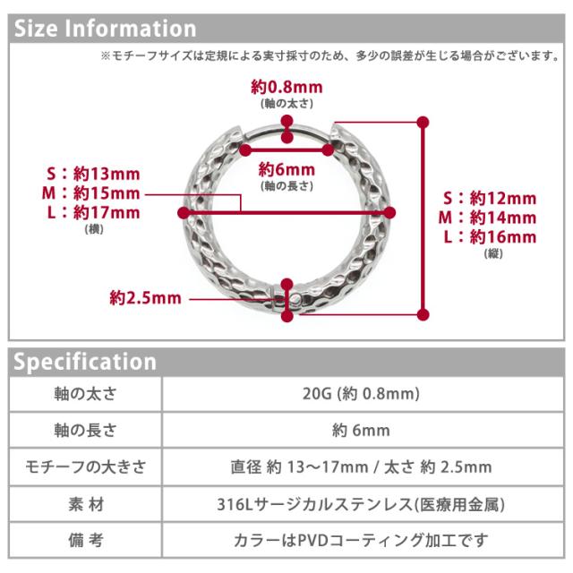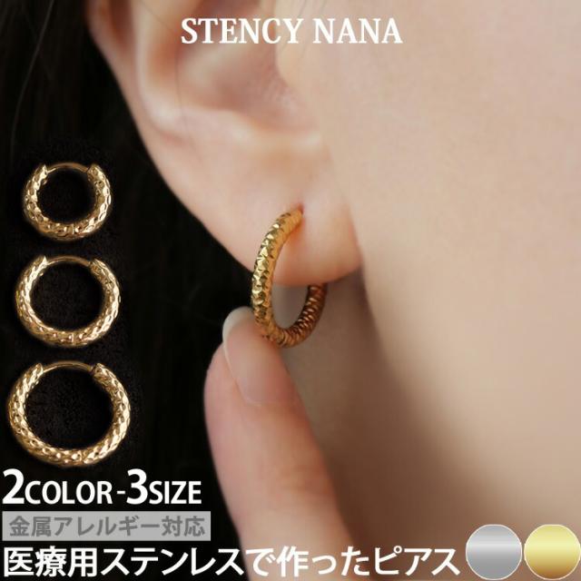 金属アレルギー対応 ステンレスピアス 槌目模様プチフープピアス ステンレスピアス 両耳用 316L