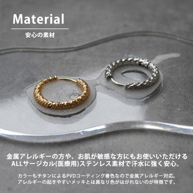 金属アレルギー対応 ステンレスピアス 槌目模様プチフープピアス フープピアス ファーストピアス セカンドピアス スポーツ プール 両耳用