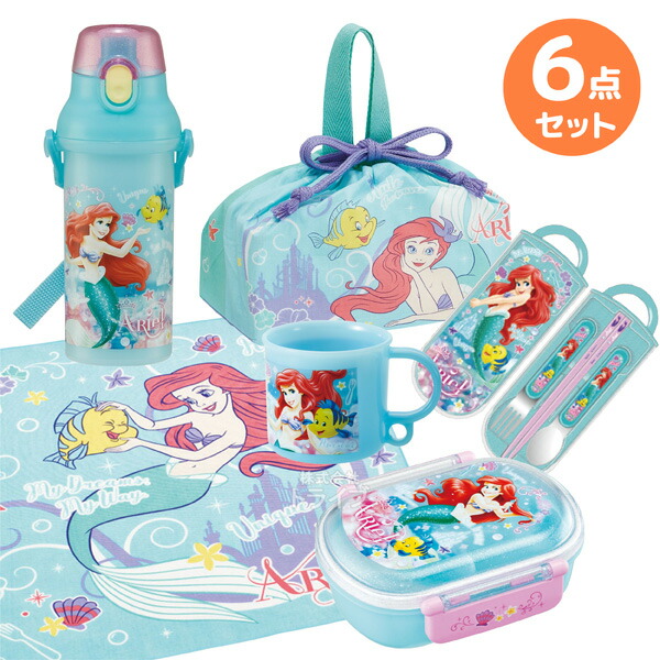 リトルマーメイド アリエル お買得6点セット 抗菌 お弁当箱 中子付 360ml トリオ コップ プラ水筒 巾着 ランチクロス