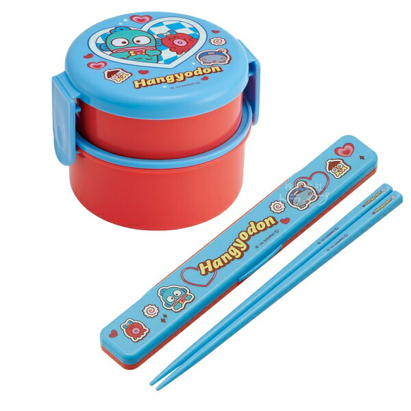 ハンギョドン パーティー 抗菌 丸型ランチボックス2段 ミニフォーク付 箸&箸箱 セット