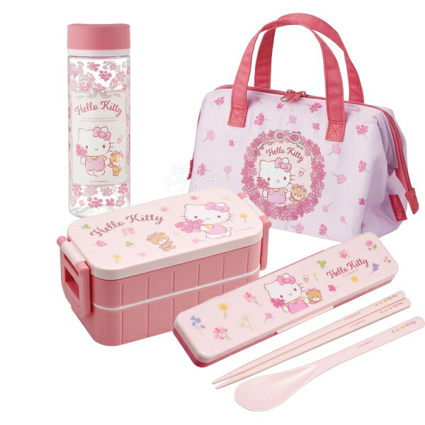 ハローキティ フラワーリース お買得 4点セット 抗菌 2段 箸付 ランチボックス コンビ クリアボトル400ml ランチバッグ セット YZW3AG