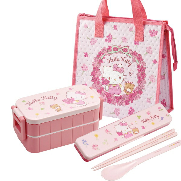 ハローキティ フラワーリース 抗菌 箸付お弁当箱 2段 コンビ 不織布 保冷バッグ セット