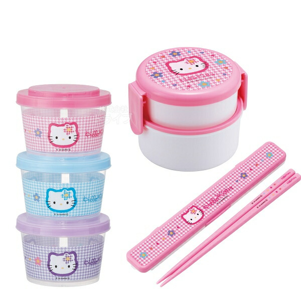ハローキティ カオハナ 抗菌 丸型ランチボックス2段 ミニフォーク付 箸&箸箱 フードコンテナ3P セット
