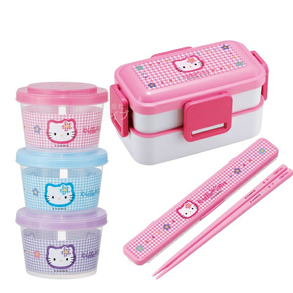 | ハローキティのお弁当箱セットです。4点ロックのお弁当箱は、しっかりフタが出来るので汁漏れも安心◎単品で買うよりもお買得なセットをこの機会に是非どうぞ! | |
