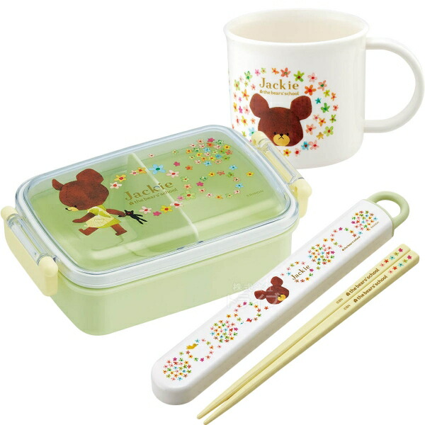 くまのがっこう 抗菌 角型お弁当箱 450ml 箸&箸箱 コップセット
