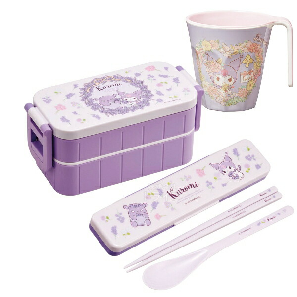 | クロミのお弁当箱セットです。2段ランチボックスはバッグに収納しやすいシンプルな形。中蓋に収納できるお箸も付いています。単品で買うよりもお買得なセットをこの機会に是非どうぞ! | |