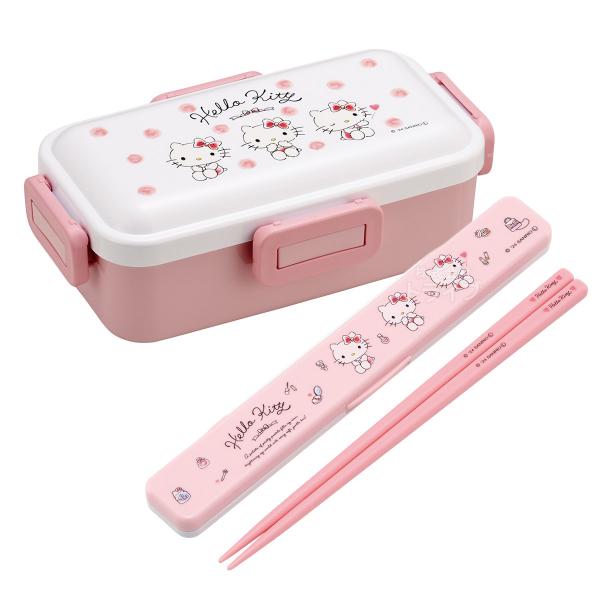 ハローキティ 水彩コスメ 抗菌 4点ロックお弁当箱 箸&箸箱 セット