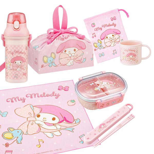 マイメロディ ビッグリボン お買得7点セット 抗菌 お弁当箱 中子付 360ml 箸&箸箱 巾着 ランチクロス コップ コップ袋 プラ水筒