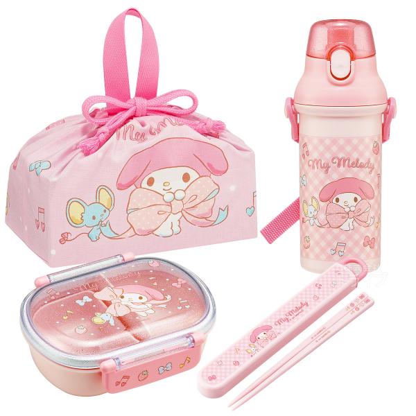 マイメロディ ビッグリボン お買得4点セット 抗菌 お弁当箱 中子付 360ml 箸&箸箱 巾着 プラ水筒