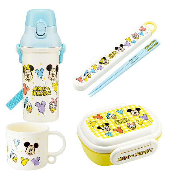 ミッキー&フレンズ お買得4点セット 抗菌 お弁当箱 中子付 270ml 箸&箸箱 コップ プラ水筒