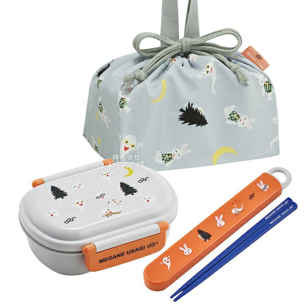 めがねうさぎ 抗菌 お弁当箱 中子付 360ml 箸&箸箱 巾着セット