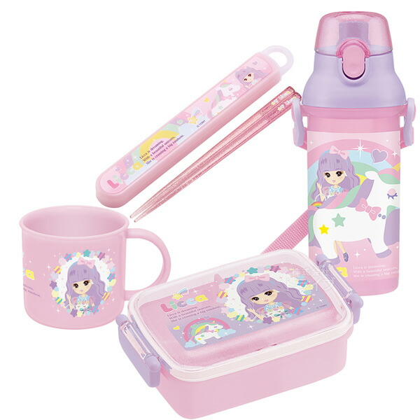 リカちゃん お買得4点セット 抗菌 角型お弁当箱 450ml 箸&箸箱 コップ プラ水筒