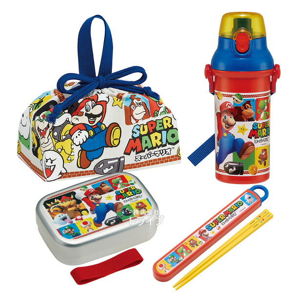 スーパーマリオ お買得4点セット アルミお弁当箱 370ml 箸&箸箱 巾着 プラ水筒