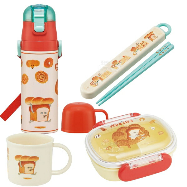 パンどろぼう お買得4点セット 抗菌 お弁当箱 中子付 270ml 箸&箸箱 コップ 2WAY水筒
