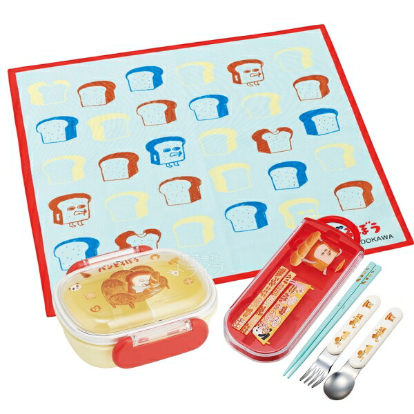 | パンどろぼうの楽しいお弁当セットです!これでお弁当グッズがひと通り揃います♪ 小判型のお弁当箱は洗いやすくて人気の商品です。容量は少なめの270ml。単品で揃えるよりもお買得なセットをこの機会に是非どうぞ! | |