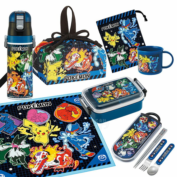 (4月中旬入荷予定)ポケモン 25 お買得7点セット 抗菌 角型お弁当箱 450ml トリオ 巾着 ランチクロス コップ コップ袋 水筒
