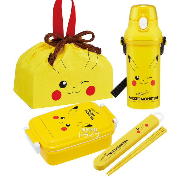 ポケモン ピカチュウ フェイス お買得4点セット 抗菌 角型お弁当箱 450ml 箸&箸箱 巾着 プラ水筒