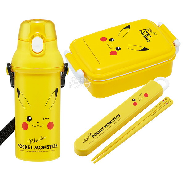 ポケモン ピカチュウ フェイス 抗菌 角型お弁当箱 450ml 箸&箸箱 プラ水筒 480ml セット