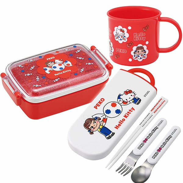 ペコちゃん キティ コラボ 抗菌 角型お弁当箱 450ml トリオ コップセット