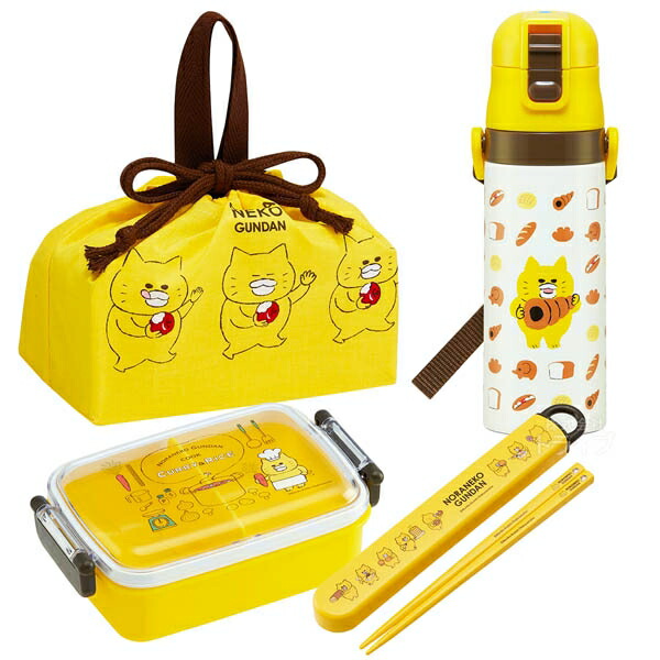 | ノラネコぐんだんの楽しいお弁当セットです!これでお弁当グッズがひと通り揃います♪ 角型のお弁当箱は詰めやすくて容量も450mlと満足の大きさ!単品で揃えるよりもお買得なセットをこの機会に是非どうぞ! | |
