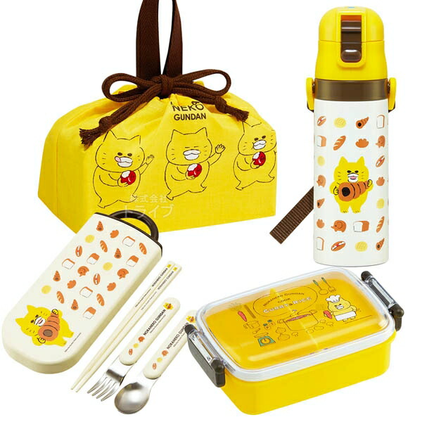 | ノラネコぐんだんの楽しいお弁当セットです!これでお弁当グッズがひと通り揃います♪ 角型のお弁当箱は詰めやすくて容量も450mlと満足の大きさ!単品で揃えるよりもお買得なセットをこの機会に是非どうぞ! | |