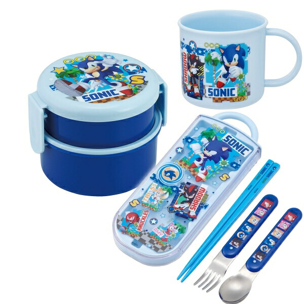 ソニック 抗菌 丸型ランチボックス2段 トリオ コップセット