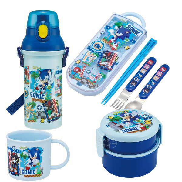 ソニック お買得4点セット 抗菌 丸型ランチボックス2段 フォーク付 トリオ コップ プラ水筒