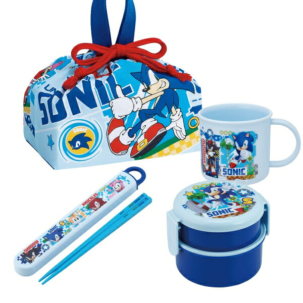 ソニック お買得4点セット 丸型2段ランチボックス 箸&箸箱 コップ 巾着セット
