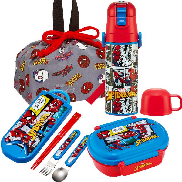 (3月下旬入荷予定)スパイダーマン お買得4点セット 抗菌 お弁当箱 中子付 360ml トリオ 巾着 2WAY水筒