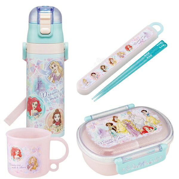 ディズニー プリンセス 25 お買得4点セット 抗菌 お弁当箱 中子付 360ml 箸&箸箱 コップ 水筒