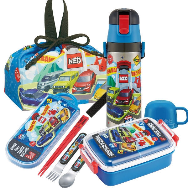 | トミカの楽しいお弁当セットです!これでお弁当グッズがひと通り揃います♪ 角型のお弁当箱は詰めやすくて容量も450mlと満足の大きさ!単品で揃えるよりもお買得なセットをこの機会に是非どうぞ! | |